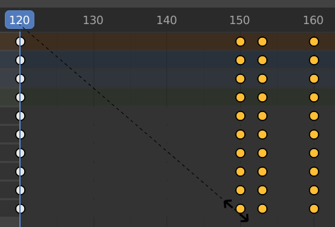 Once the keyframes are mirrored, there’s a good chance some of them will be outside the the timeline. Press ‘G’ to “grab” selected frames and drag them back onto the timeline.