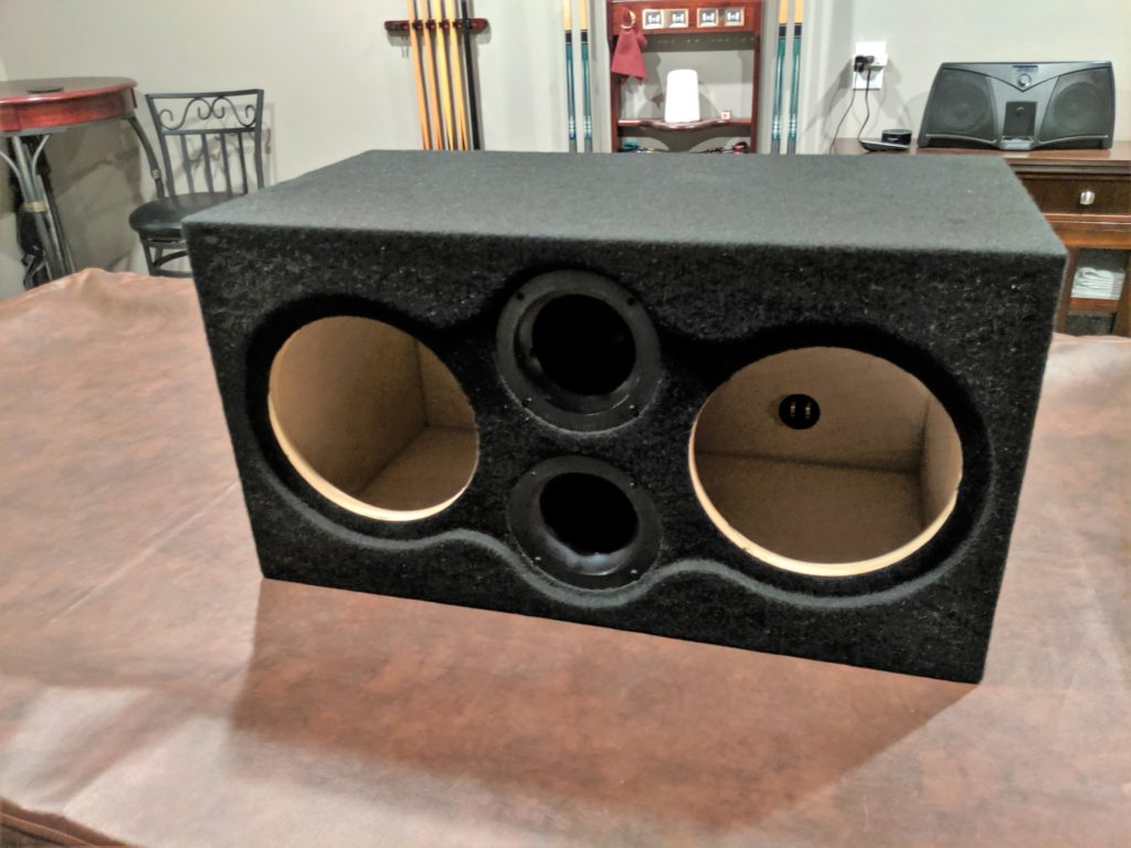 From there I did a lot of searching and finally found an enclosure that matched my subs and I liked the way it looked. It wasn’t the perfect dimensions, but the seller mentioned they could adjust the size. The seller even offered to tune it to any frequency I wanted, which unfortunately just left me with even more questions!