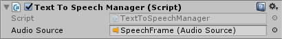 3. Add a TextToSpeech component anywhere in your scene and link (drag and drop) the audio source you created in the last step to link it with the manager.